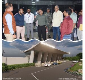 संबंध में अधिकारियों से विस्तार से चर्चा की। कलेक्टर एयरपोर्ट में 3सीआईएफआर के संबंध में चल रहे कार्यो को देखा।